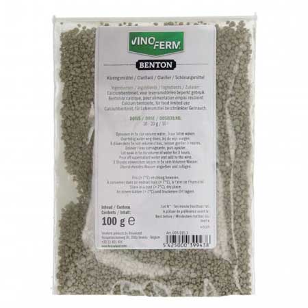 Bentonietkorrels van speciale kwaliteit voor wijn, met een groot opslorpend vermogen. Ook voor voorklaring van wijnen en sappen (most). Dosis: 1 – 2 g/l, gedurende 3 tot 5 uur laten zwellen in 5 x zijn volume water. Daarna overtollig water afgieten en toevoegen aan sap/wijn.