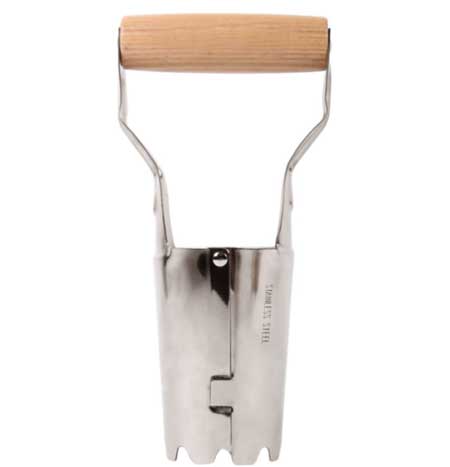 Deze klassieke bollenplanter is geschikt als hulpmiddel bij het planten. Aan de zijkant van de bollenplanter kun je aflezen hoe diep de bollenplanter onder de grond zit. Aan de bovenzijde zit een essenhouten tussenstuk. Verder is de bollenplanter geproduceerd uit roest vast staal wat een langere levensduur heeft.