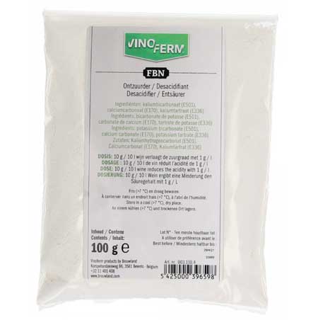 Dosis : 13 g / 10 liter vermindert de zuurgraad met 1 g / liter.