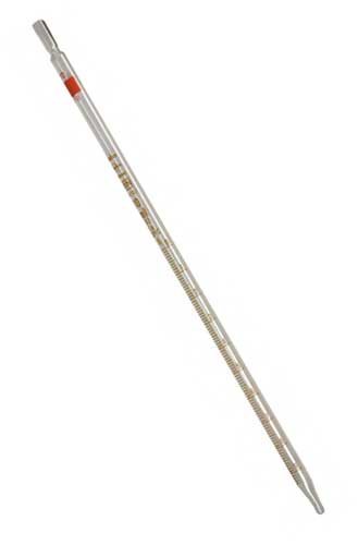 Glazen pipet met gradering van 1 tot 10ml. met 0,1ml. onderverdeling.