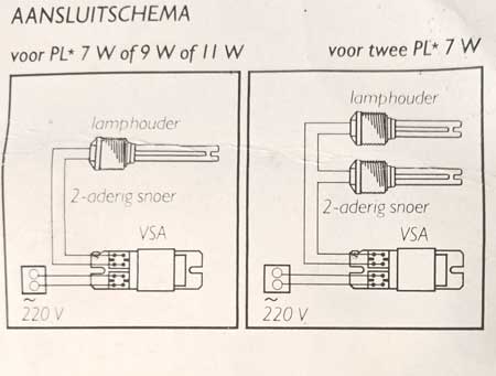Montageset van het merk “Philip” voor gebruik met PL-lampen van 11 Watt of voor 2 PL-lampen van 7 Watt.