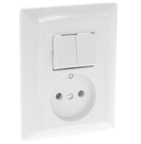 Serieschakelaar combinatie met randaarde stopcontact, inbouw.
